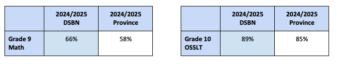 DSBN is pleased with our results on the EQAO assessments and proud of the hard work and engagement shown by our students. Their progress reflects the collaborative efforts of teachers, instructional coaches, consultants, and administrators across the system. Together, we remain committed to building on this success and continuing to improve student learning and achievement.